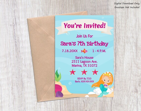 Mermaid Birthday Party Invitations Little Girl S Birthday Etsy